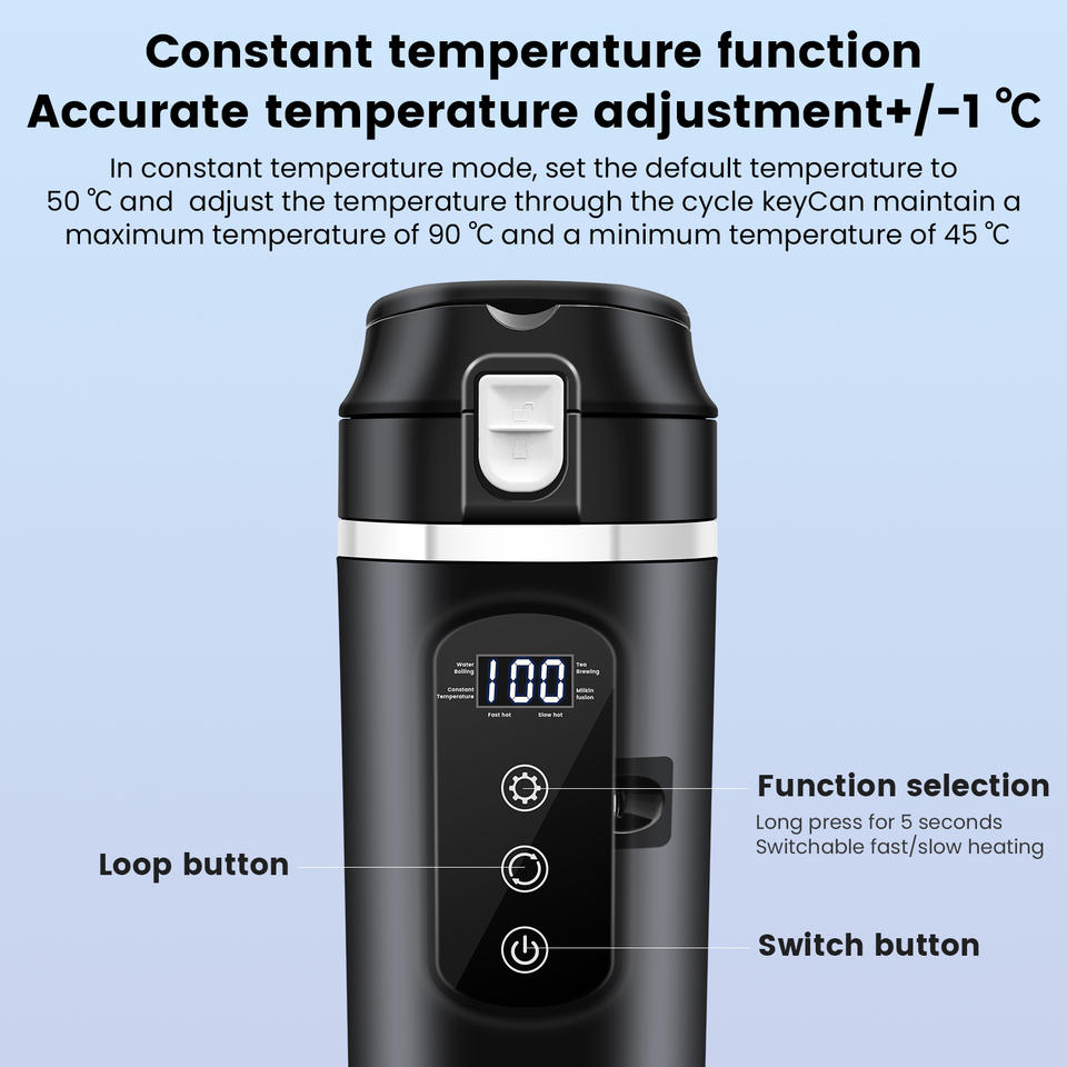 12V 24V coche eléctrico integrado inteligente de doble capa calefacción hirviendo 304 acero inoxidable aislado termo botella de agua taza