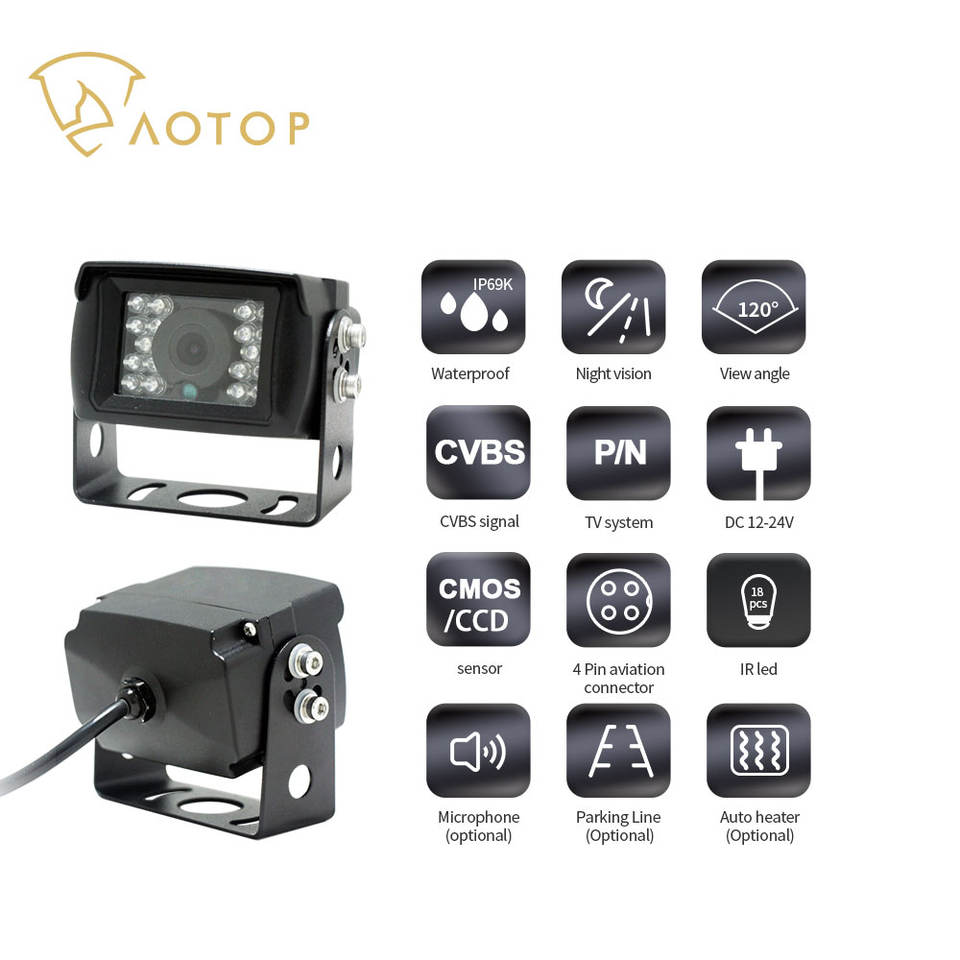 Cámara de visión trasera para camión de 12V y 24V, LED IR HD Visión Nocturna, imagen de marcha atrás, monitoreo de zona ciega, cámara de respaldo para camión, 18 Uds.