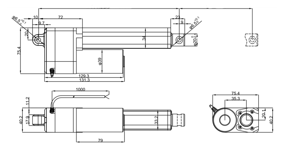 Actuador lineal impermeable IP65 de 12V/24V CC con retroalimentación de potenciómetro, opción Personalizada, soporte de montaje para instrumento cosmético