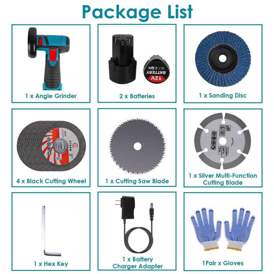 Mini Amoladora Angular Inalámbrica de 12V, Máquina de Pulir y Esmerilar Manual, 7 Discos, 2 Baterías de 1100mAh, Grabador y Cortador Inalámbrico