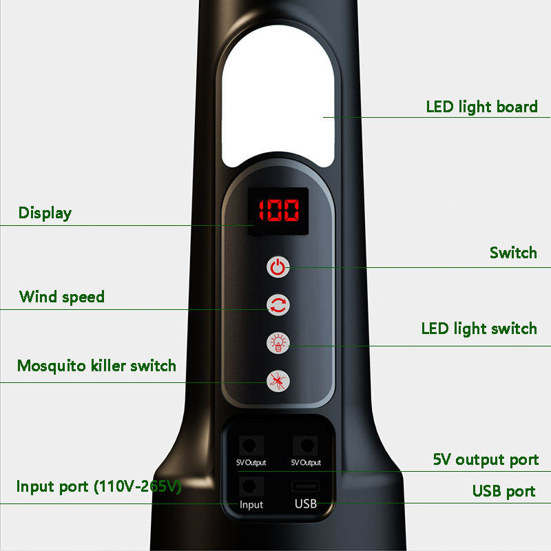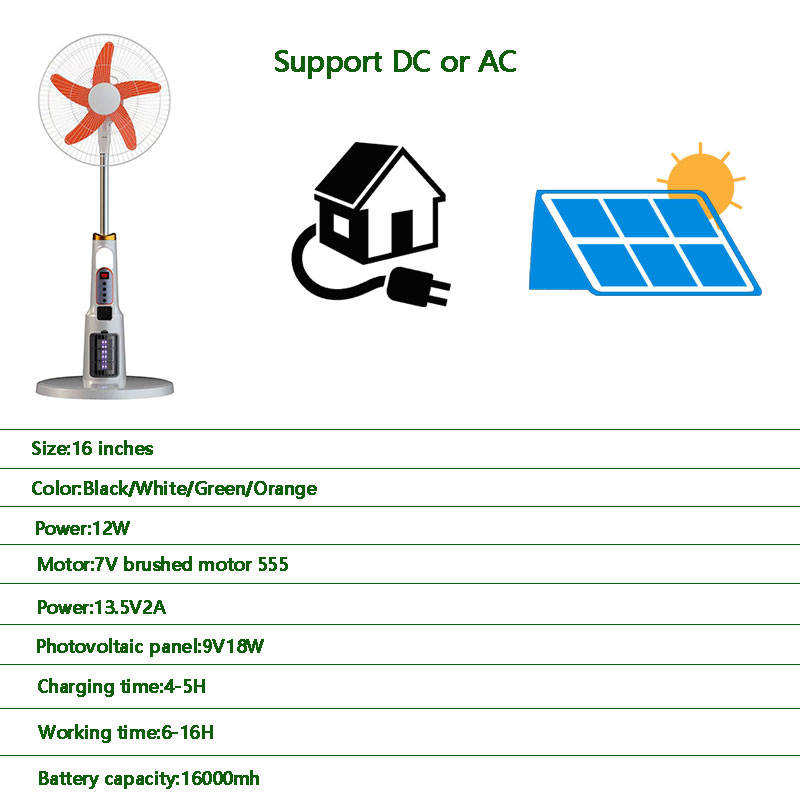 Ventilador solar sin escobillas de 12V CC con control remoto y luz LED DE EMERGENCIA 110V-265V Entrada 1800mh Motor de ventilador