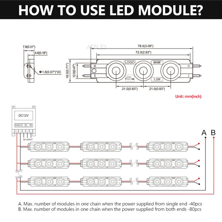 Nombre del producto:Módulo LED 2835 impermeable con retroiluminación para señalización luminosa