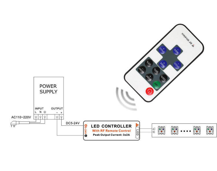 Product name:5-24V mini RF wireless dimmer led monochrome 11 key rf controller