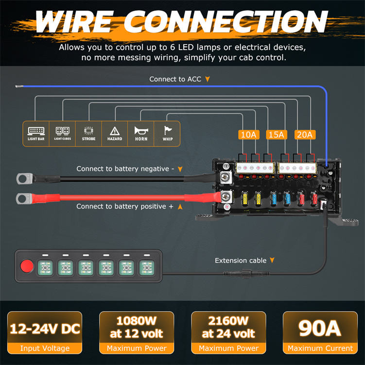 Panel de Interruptores de 6 Canales con Luz LED Multifunción de 12V para Automóviles Todoterreno, SUV, Side-by-Side, UTV, Quad, 4 Ruedas