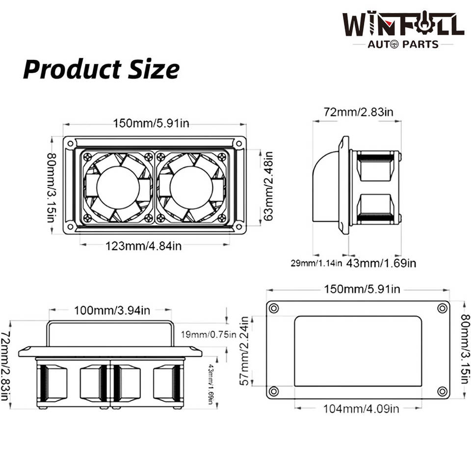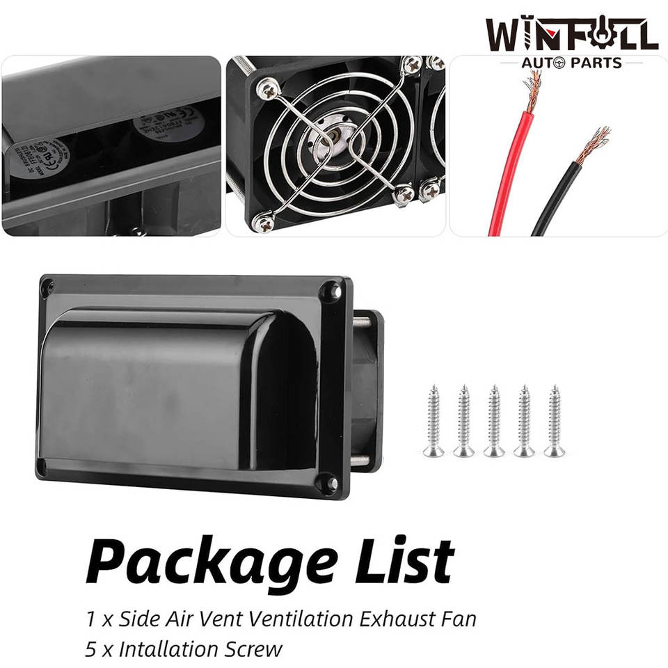 Ventilador Lateral de 12V para RV con 2 Motores de Alta Potencia para Autocaravana, Remolque, Barco, Yate, Color Negro