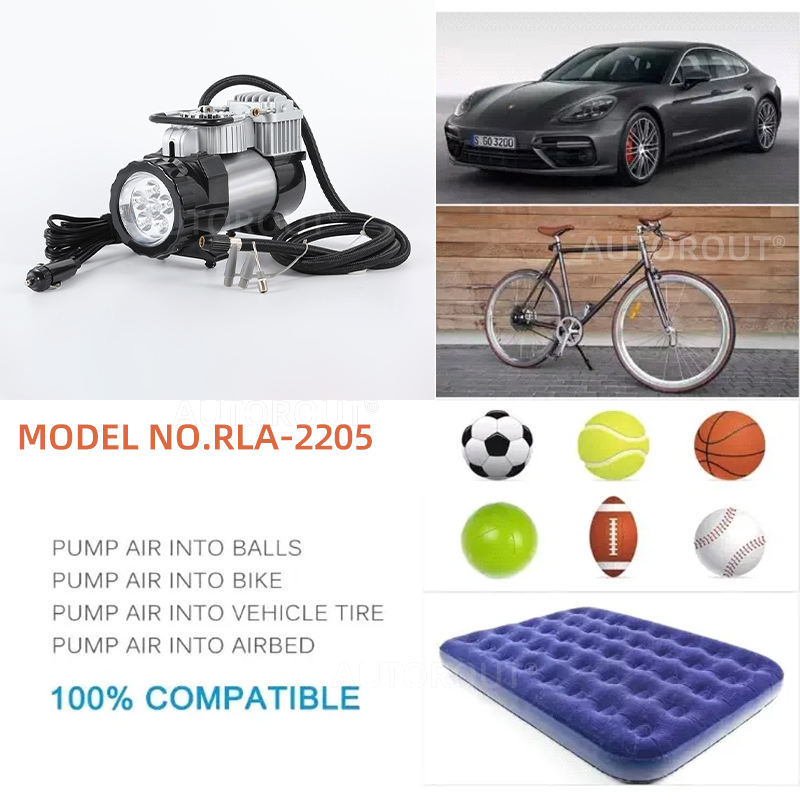 Compresor de Aire Portátil de 12V, Monocilíndrico, 150 PSI, Mini Compresor de Aire Metálico para Auto, Bomba Eléctrica con Luz LED, Inflador de Neumáticos para Herramientas de Auto