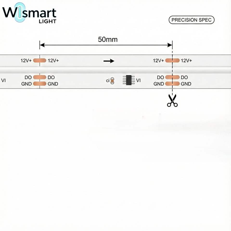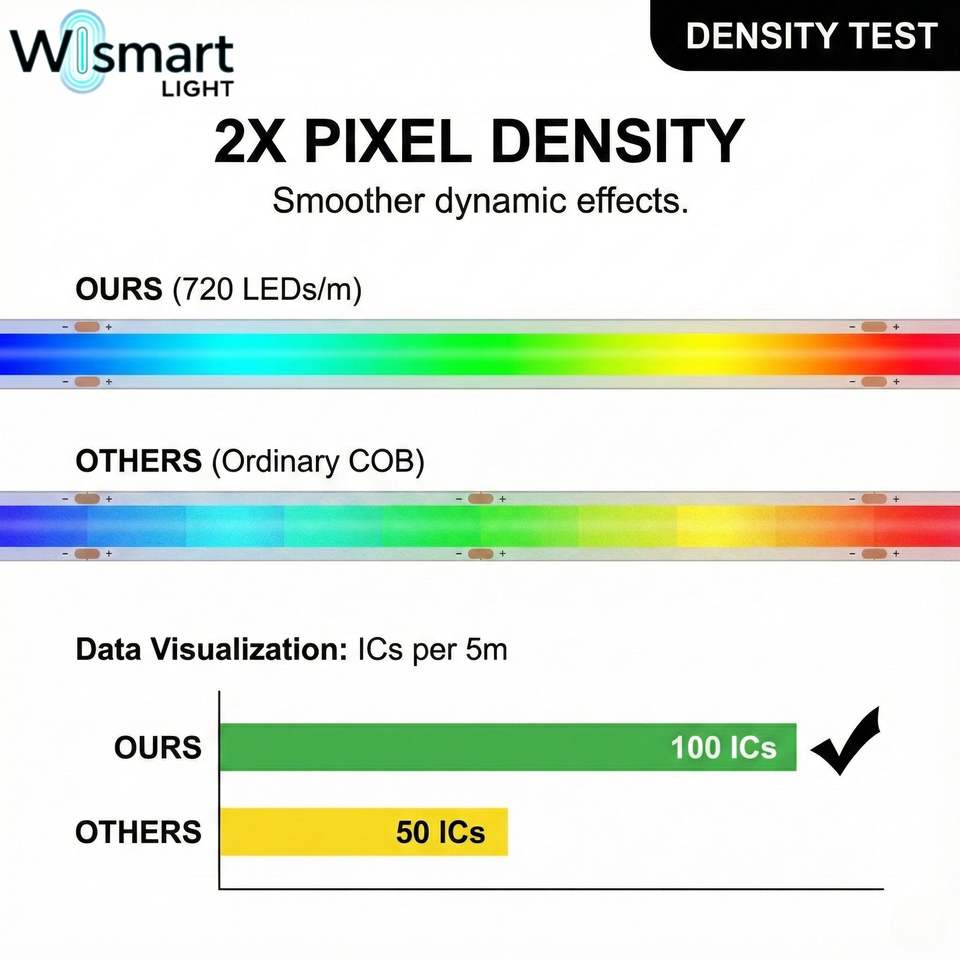 Tira de LED COB Direccionable WS2811 de 12V, WiFi RGBIC, 720 LED/m, IP20, 90 CRI, Color de Ensueño Continuo, Luz Inteligente de Píxeles para Habitación, TV, DIY