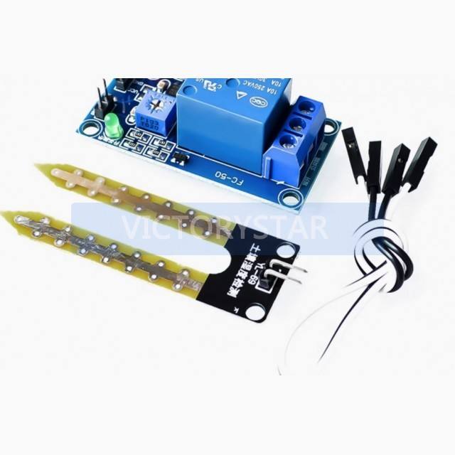 When the humidity is lower than the set humidity the relay will automatically close and start the humidification action of spraying water pump etc when the soil humidity is lower than the set humidity When the set humidity is reached it will automatically stop brPurposenbsp By adjusting the soil moisture control threshold through a potentiometer it can automatically water vegetable gardens and gardens control soil moisture in household flower pots various electronic competitions etc It is equipped with a highpower relay that can control high current devices When the humidity is lower than the set humidity the relay will automatically start and close and when it is higher than the set humidity it will automatically disconnect It also has a delay function to solve the problem of the relay flashing continuously in the humidity critical state without delay It is a simple and practical soil moisture control system brProduct Introductionnbsp 1 We use highquality soil sensors produced by our company for soil moisture detection The surface is treated with nickel plating which widens the sensing area and improves conductivity preventing rusting when in contact with soil and extending its service life 2 The product can control the humidity of the soil in a wide range The corresponding threshold can be adjusted through a potentiometer When the humidity is below the set value the relay will be activated and closed When it is above the set value the relay will be disconnected 3 The product has a delay function which can delay for 35 seconds When the humidity is detected to be in a critical state the relay will not flash and a flicker phenomenon will occur 4 The product has power indication and relay engagement indication brElectrical parametersn