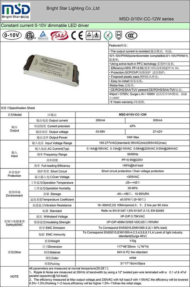MSD-0/10V-DIM-CC-12WNúmero de Modelo
