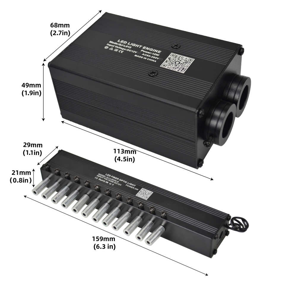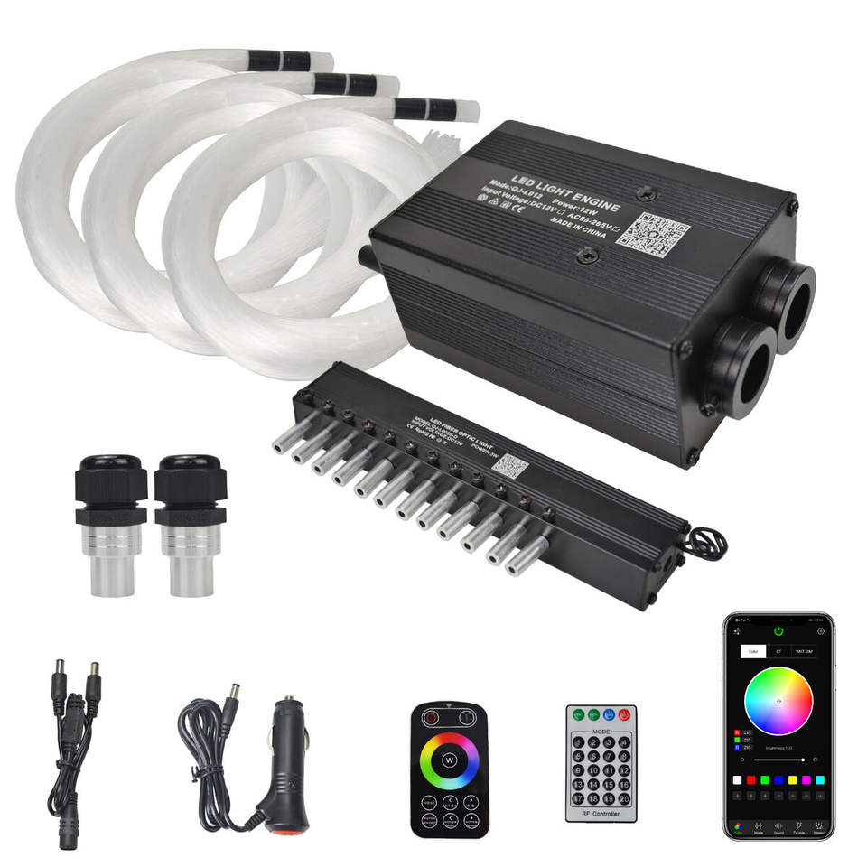 Motor de Luz LED de Fibra Óptica de Doble Salida de 12W, Regulable por APP y Táctil con Efectos de Destello de Meteoros para Techo de Coche con Efecto de Cielo Estrellado