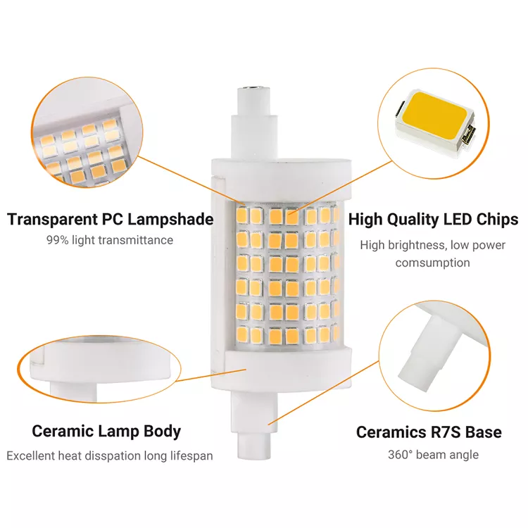 12W R7S Bombilla LED 78mm 100W Bombilla halógena Equivalente Tipo J Lineal Doble extremo 230V Bombillas reflectoras