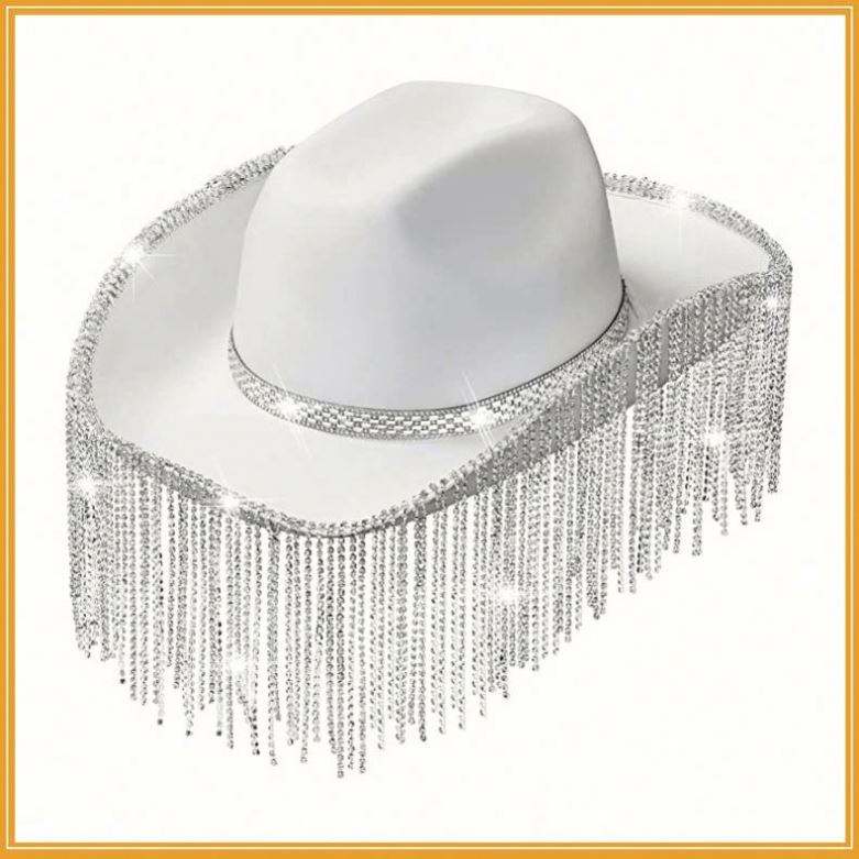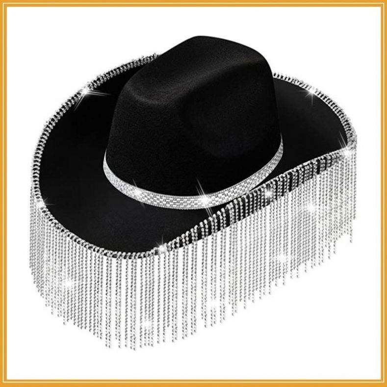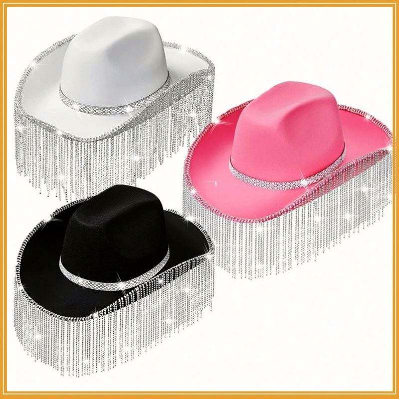 Sombrero Vaquero con Borlas de Diamantes de Imitación de 12 cm - Sombrero Casual de Viaje Unisex Color Rosa Jazz Personalizado