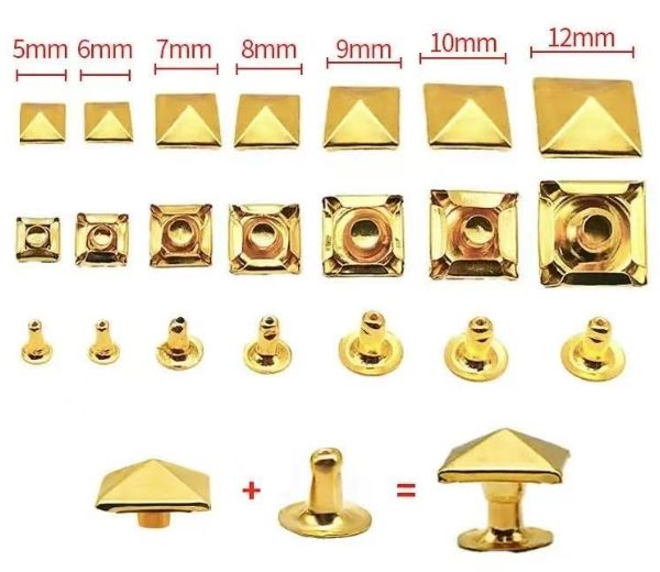 12mm plata oro pistola negro bronce DIY ropa zapatos bolsas equipaje cinturones metal pirámide remaches cono remaches