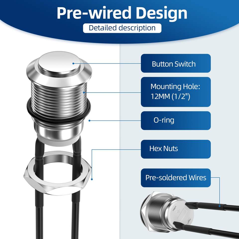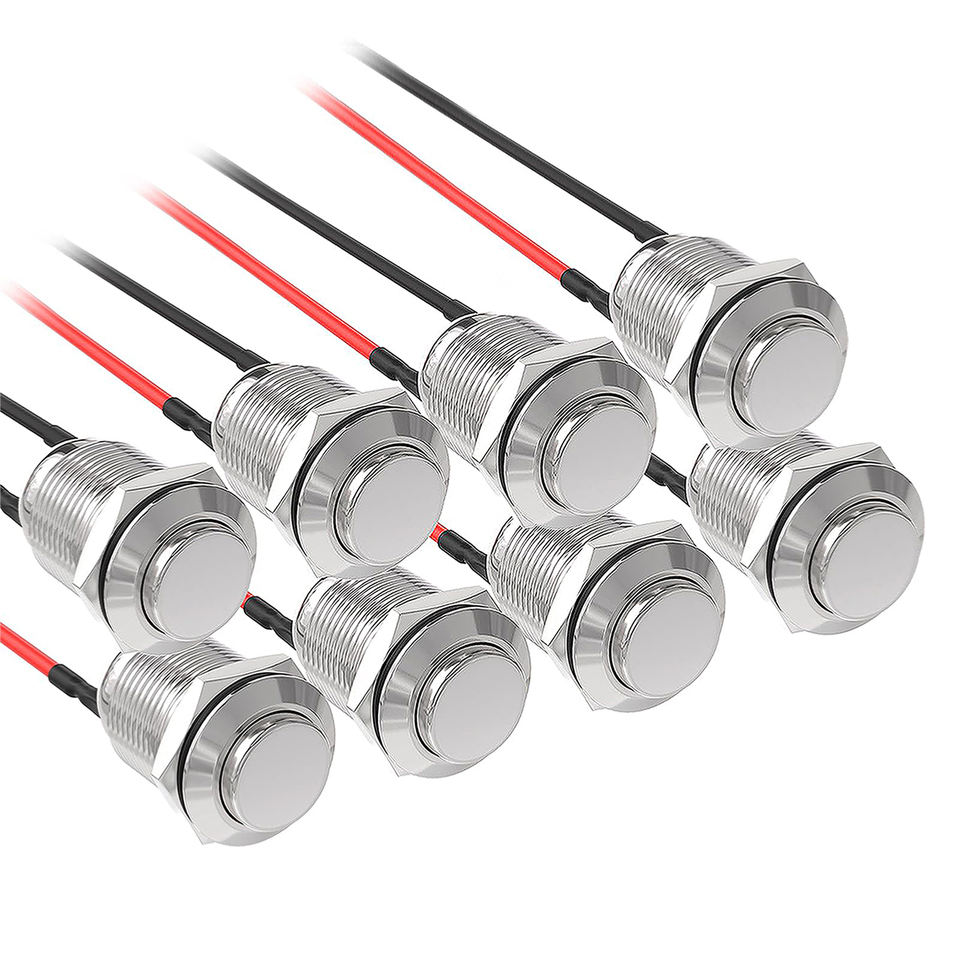 Interruptor de Botón Pulsador de Acero Inoxidable/Aluminio de 12 mm, IP65, Versión de Enclavamiento, Tamaño Pequeño, Mantiene el Estado