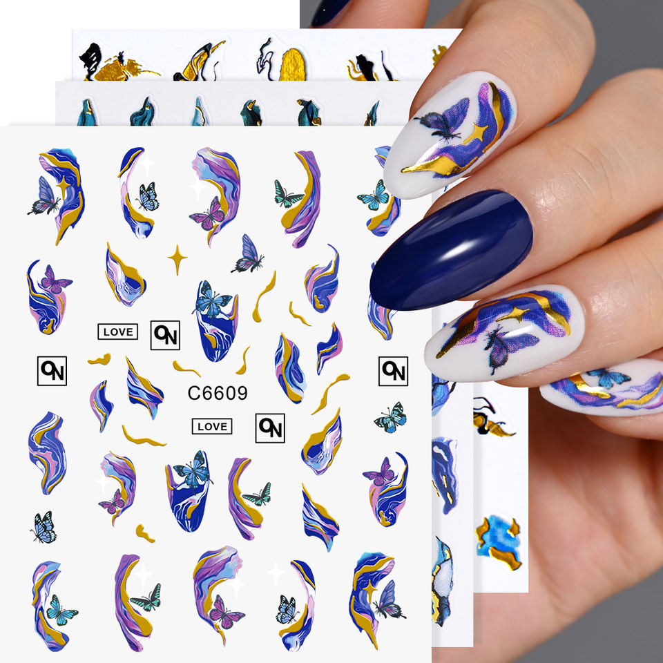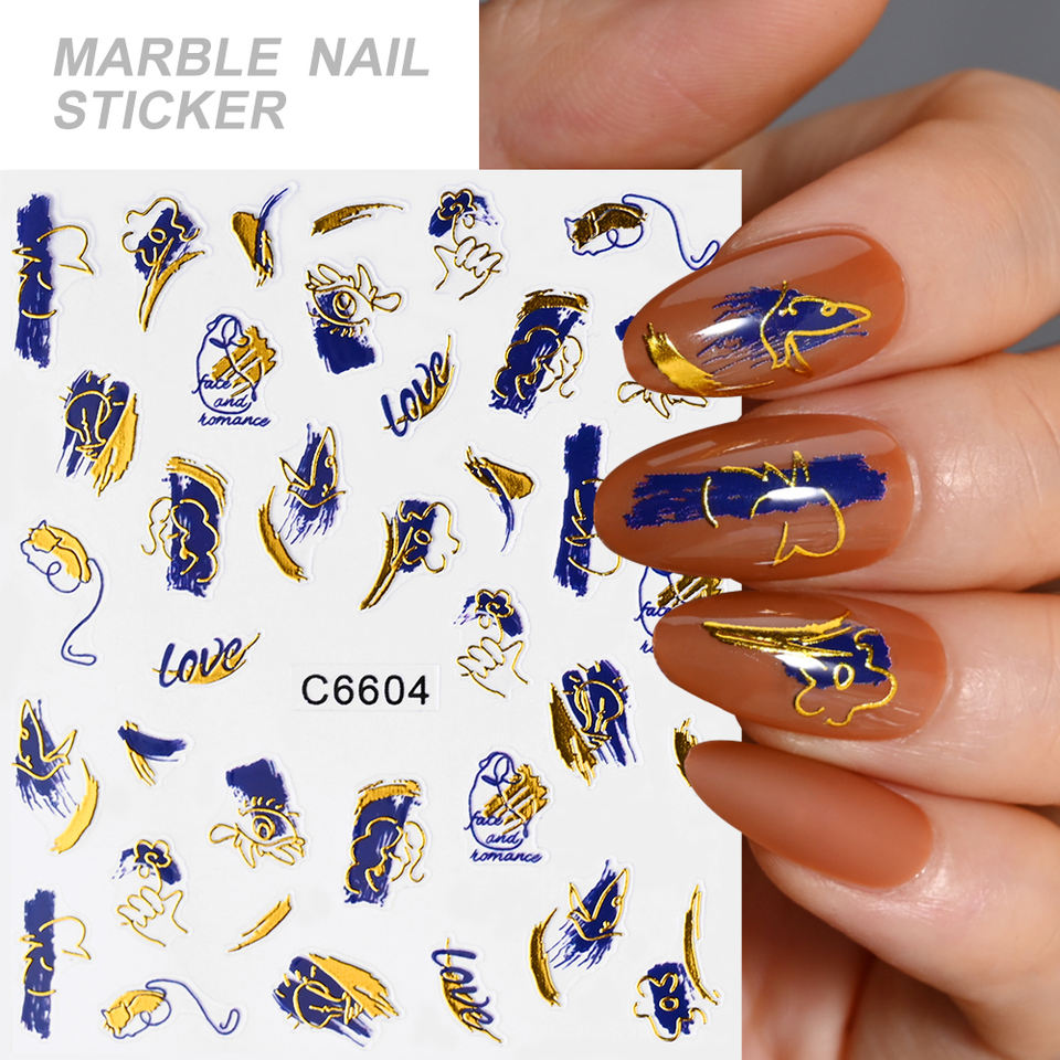 12 Uds colorido mármol onda línea diseño uñas pegatina azul Rosa negro oro borde uñas deslizadores floreciente raya abstracta manicura