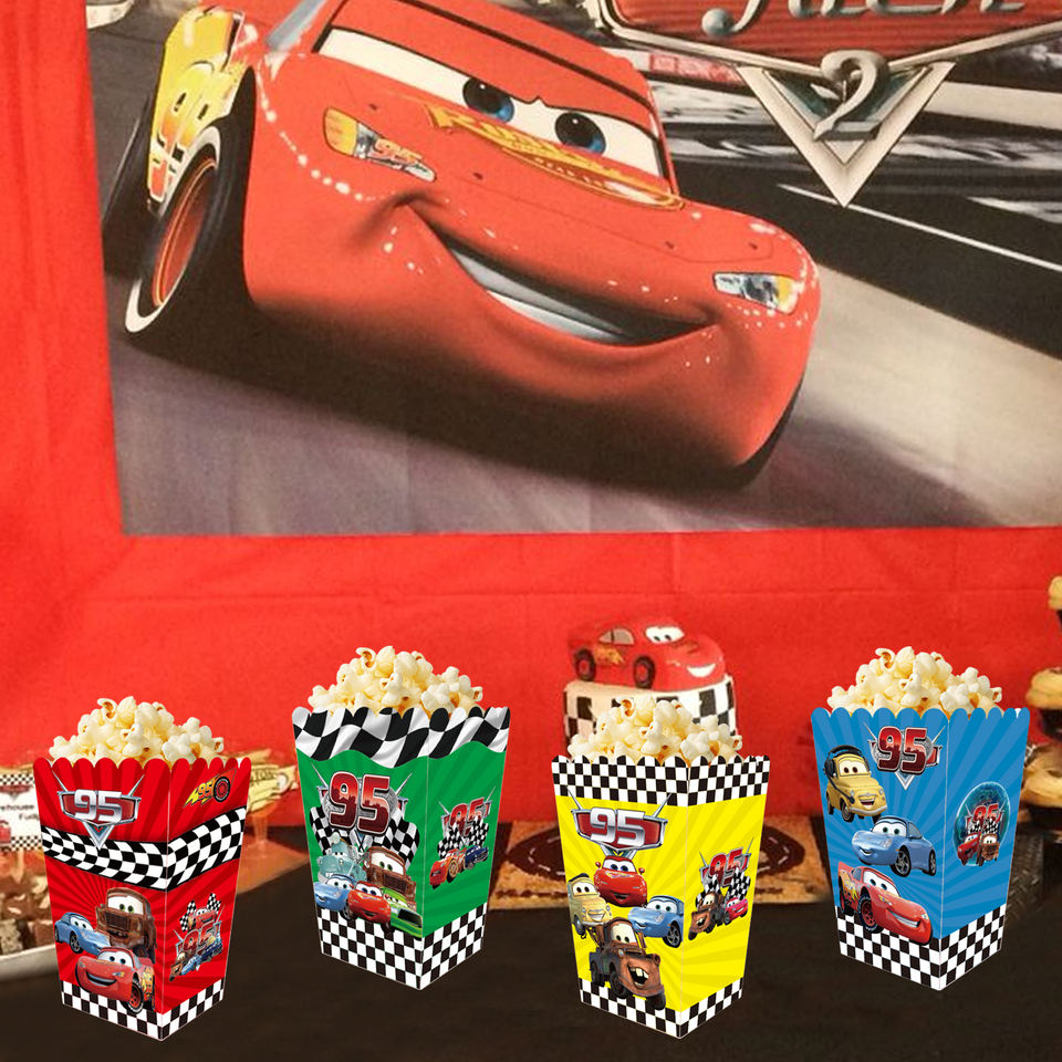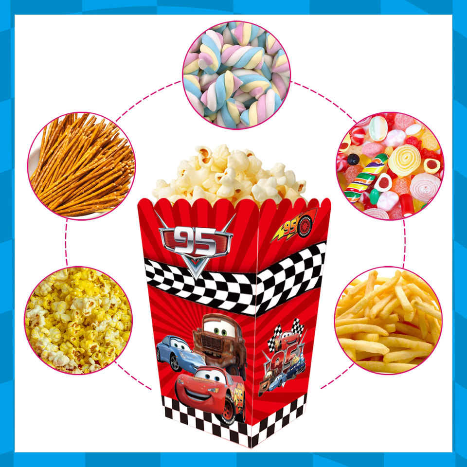 12 Uds. Bolsas de recuerdo de fiesta rápidas cajas de palomitas de maíz para coche de carreras favores de fiesta de coche de carreras caja de palomitas de maíz para decoraciones
