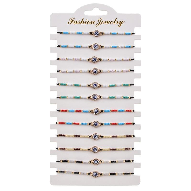 12pcs Handmade Minimalism Black Rope Knotted Charms Miyuki Beaded Crystal Alloy Evil Eye Bracelets for Girls