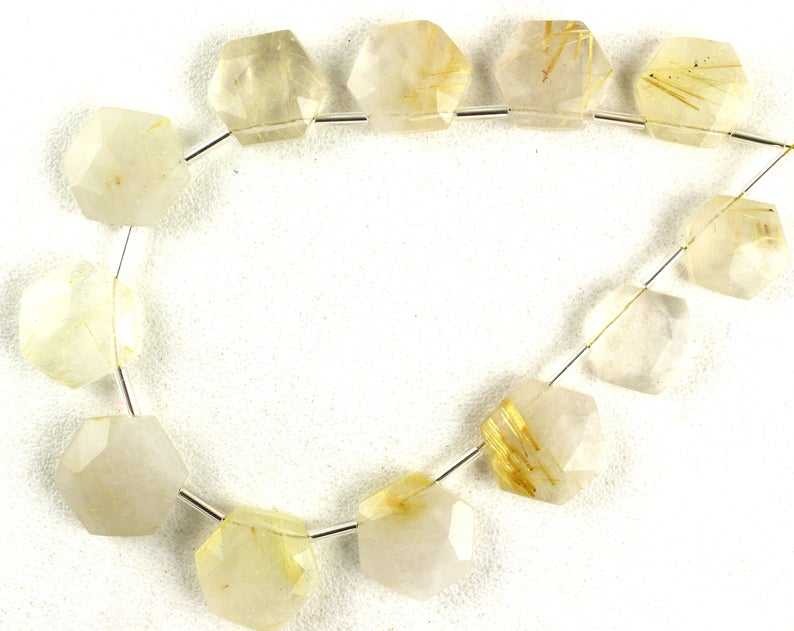 12 Uds. Cuentas de Briolette con forma de hexágono facetado de piedras preciosas de rutilo dorado Natural de alta calidad para la fabricación de joyas hechas a mano