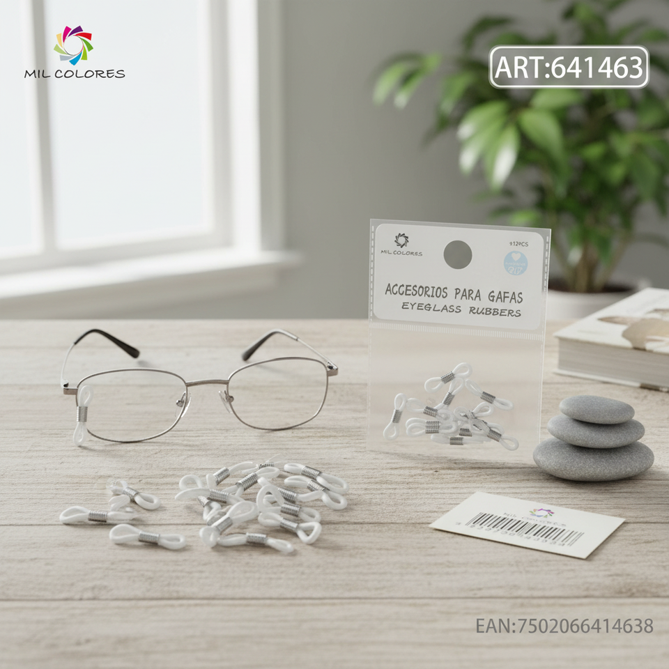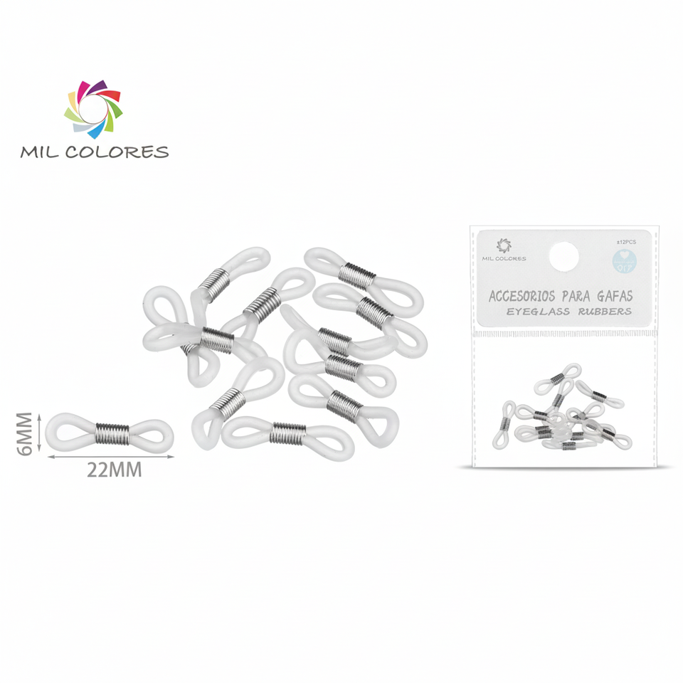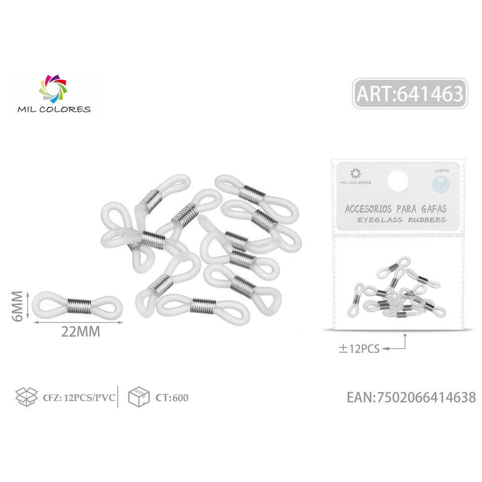 Resorte de tensión plateado de acero inoxidable y anillo de silicona blanco, accesorios para gafas, productos para el cuidado de las gafas, 12 Uds.