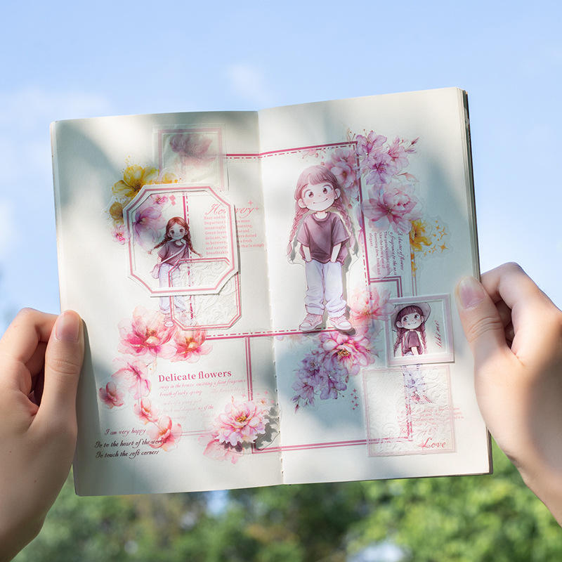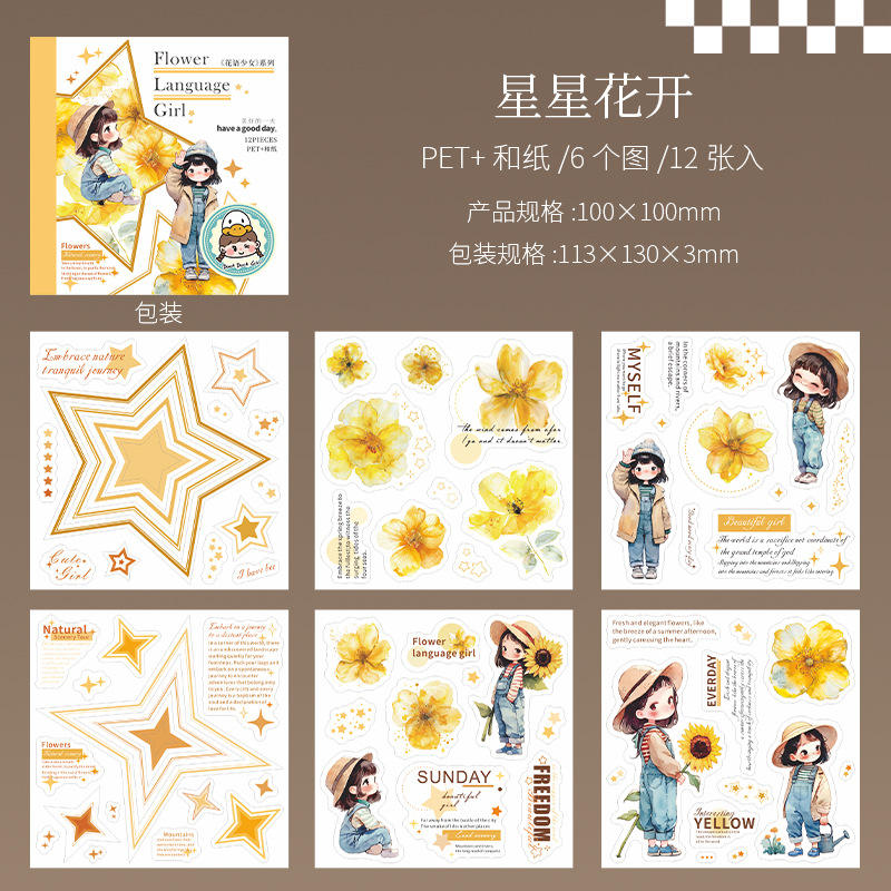 12 unids/pack doble Material pegatina libro flor lenguaje chica serie manual decoración pegatinas
