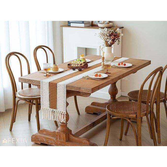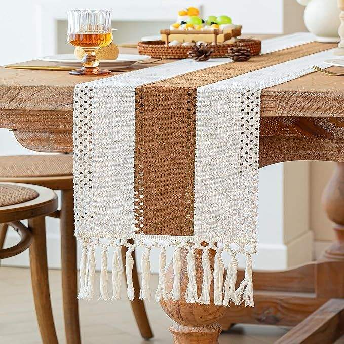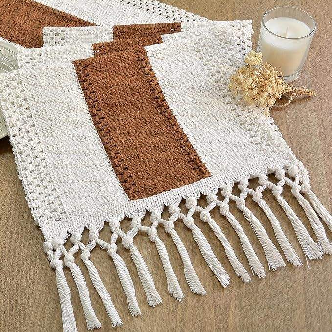 Camino de Mesa Boho de Macramé de 12x72 Pulgadas con Borlas y Diseño Calado para Decoración del Hogar, Estilo Rústico para Sala de Estar