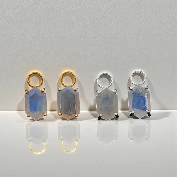 12x8mm forma hexagonal 925 plata esterlina chapada en oro Juego de puntas Arco Iris piedra lunar colgante venta al por mayor joyería a granel dijes de piedra lunar