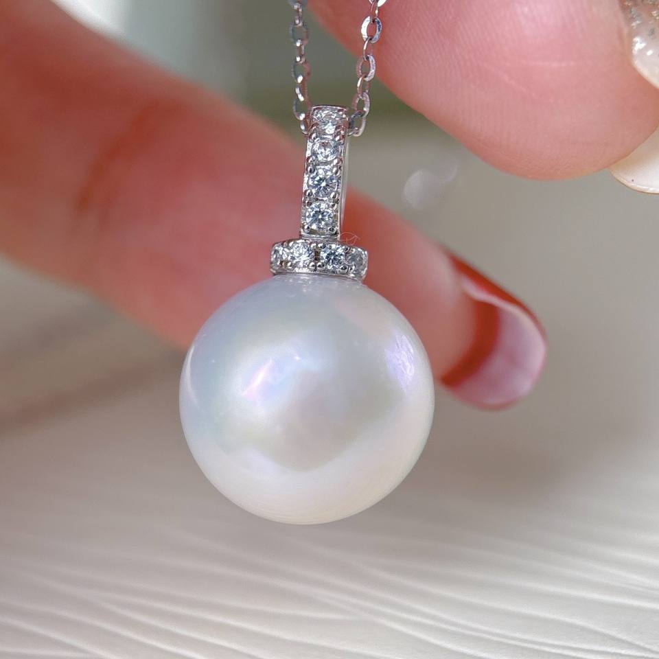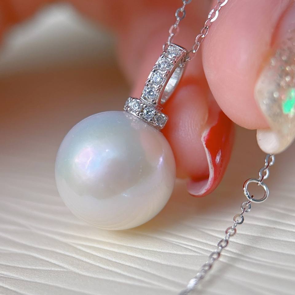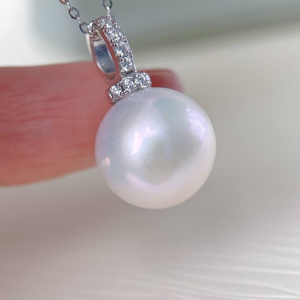 Collar de Plata de Ley S925 con Colgante de Perla de Agua Dulce de 13-14 mm, Trébol, Luz Intensa, Producto Natural