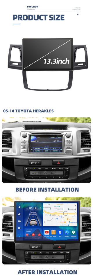 Navegación Android de 13.3 Pulgadas para Toyota Fortuner HILUX Revo Vigo 2005-2014 Reproductor Multimedia Auto Radio GPS Android