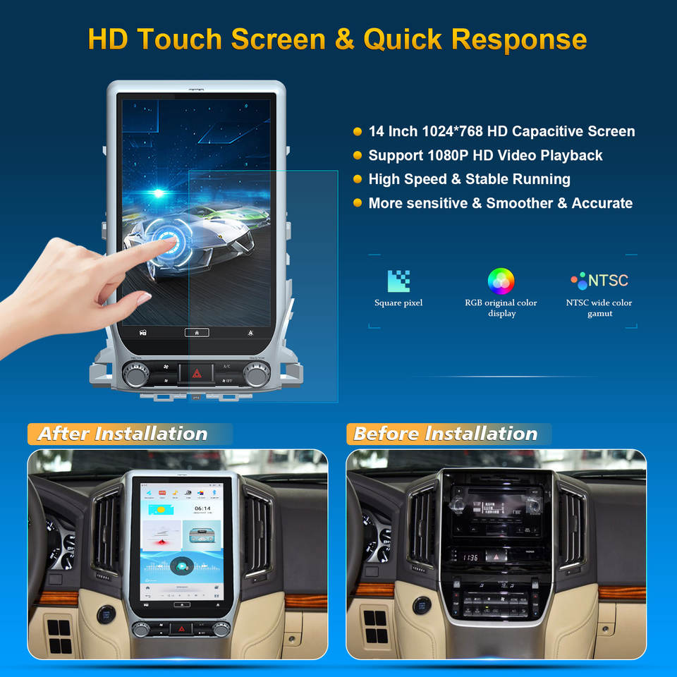 Unidad Principal Android con Pantalla Táctil Vertical de 13.6 Pulgadas para Automóvil, Estéreo para Toyota Land Cruiser LC200 VXR 2016- con Apple CarPlay y Android Auto