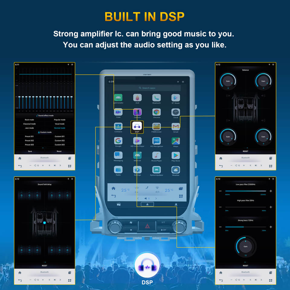 Estéreo, DSP, CarPlay, Enlace espejo, Android auto, Pantalla dividida, Administrador de archivos, Coche de Control de volante