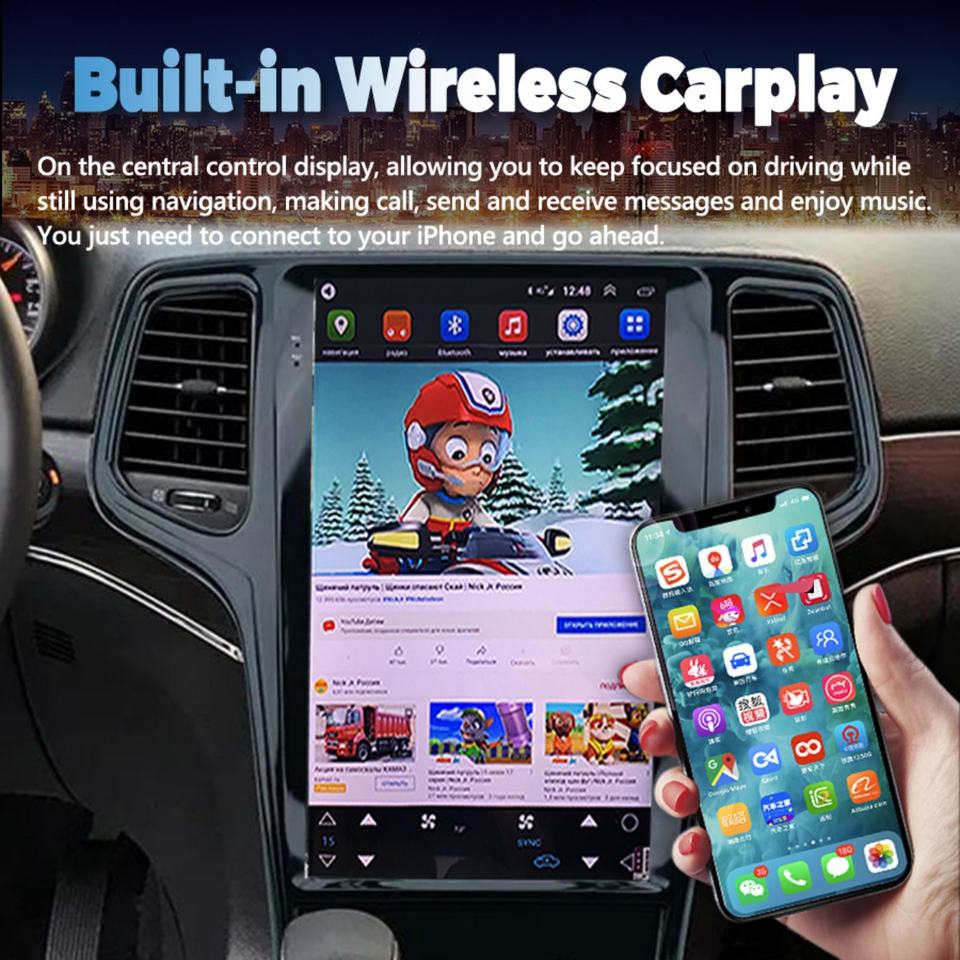 Pantalla Android Tesla de 13.6 Pulgadas para Jeep Grand Cherokee 2011-2020, GPS, Carplay, Radio para Auto, Reproductor Multimedia de Video, Navegación