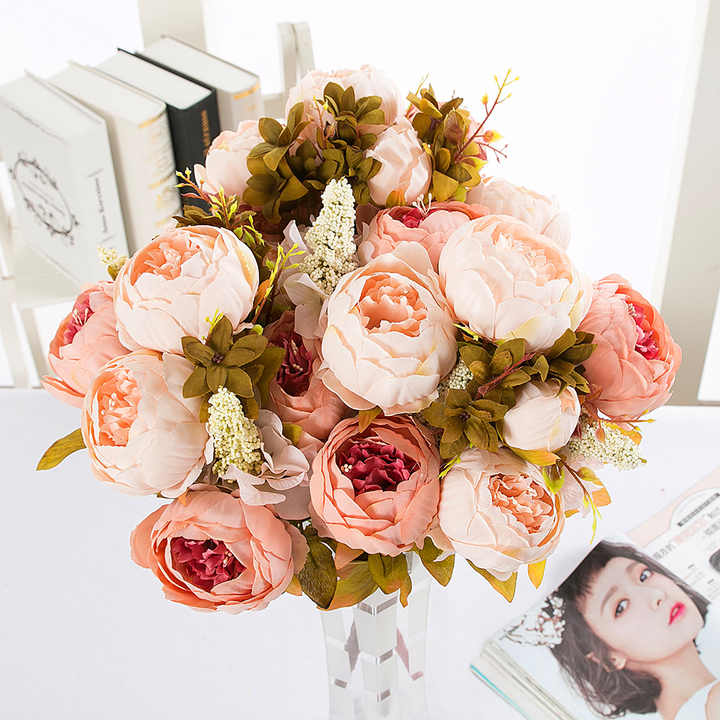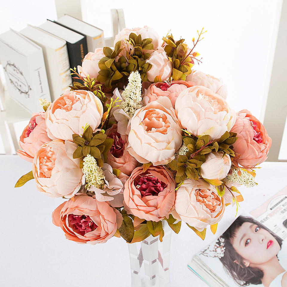 Nombre del artículo:Peonía ramo boda casa flor artificial flor peonía venta al por mayor