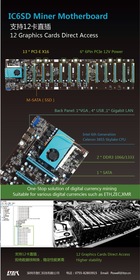 13 GPU placa base IC6SD para la minería tarjetas de Gráficos Intel DDR3 minero de BTC minero Bitcoin placa base