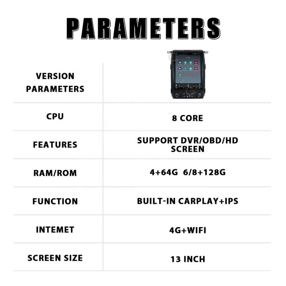 Radio para Auto de 13 Pulgadas para Ford F150 2013 2014, Android 12, 128GB, Pantalla Vertical, Multimedia, GPS, Navegación, Estéreo