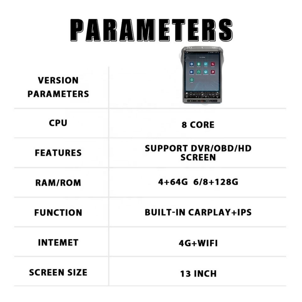 Radio para Auto de 13 Pulgadas para Ford F250 F350 2013-2016, Android 12, Pantalla Vertical, Multimedia, GPS, Navegación, Estéreo