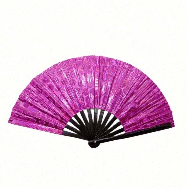Abanico Plegable de PVC Multicolor de 13 Pulgadas con Varillas de Bambú para Festivales de Música y Decoraciones, Producto de Artesanía en Bambú