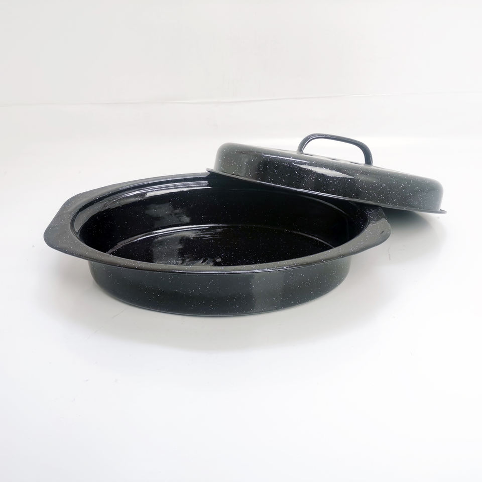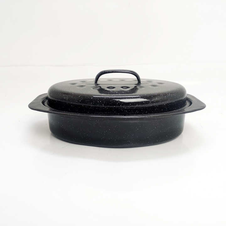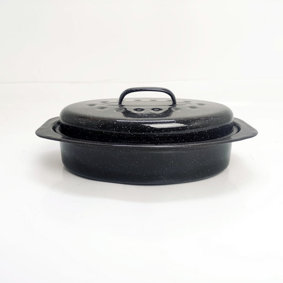 Sartén ovalada pequeña para asar de 13 pulgadas con tapa abovedada Sartenes para asar de metal esmaltado para pavo, pollo, cordero, verduras