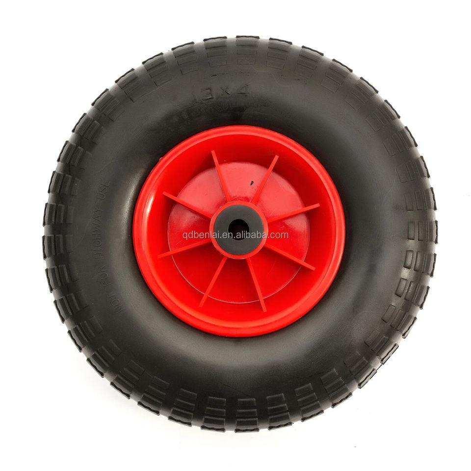Rueda sólida de 13 pulgadas y neumático de PU 4,00-6 a prueba de pinchazos Carretilla de diámetro de 16mm Rueda de espuma de PU