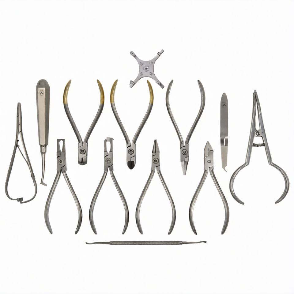 Juego de 13 Instrumentos de Ortodoncia Manuales de Acero Inoxidable, Alicates de Ortodoncia, Cortadores de Alambre, Kit con Calibrador Boone, Autoclavable