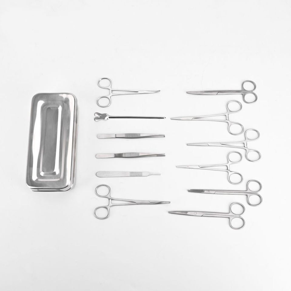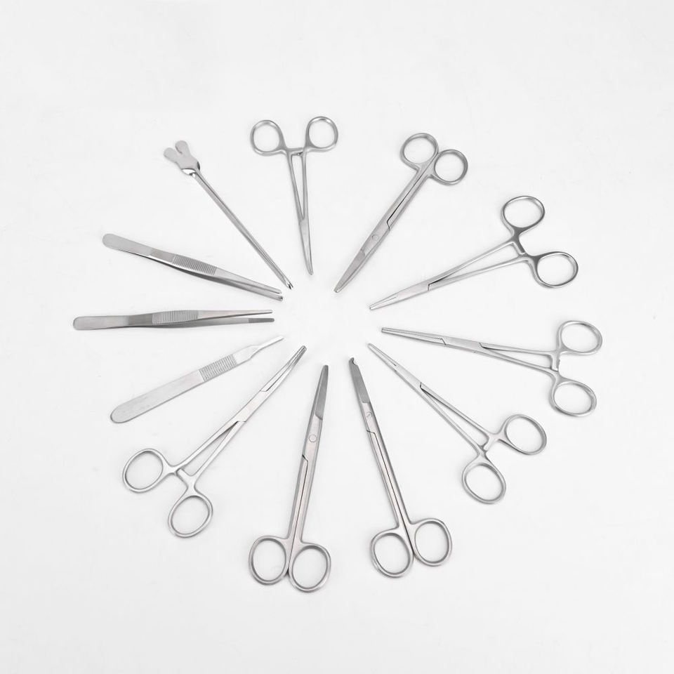 Juego de 13 Piezas de Instrumentos Quirúrgicos Básicos de Acero Inoxidable para Prácticas de Cirugía Menor, en Caja, para Entrenamiento