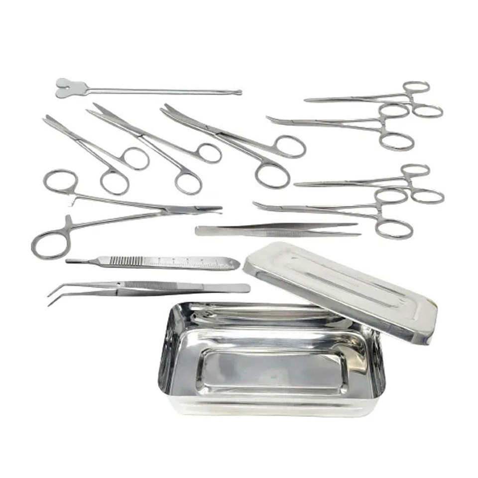 Kit básico de cirugía menor de 13 piezas, instrumentos quirúrgicos de acero inoxidable, fórceps, tijeras, portaagujas