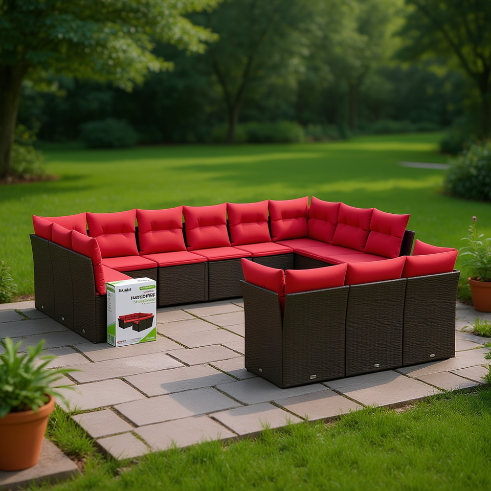 Conjunto de Sofá de Jardín de Ratán Sintético Marrón de 13 Piezas, Muebles de Exterior con Cojines, Estilo Contemporáneo para Asientos de Jardín, para 10 Personas o Más