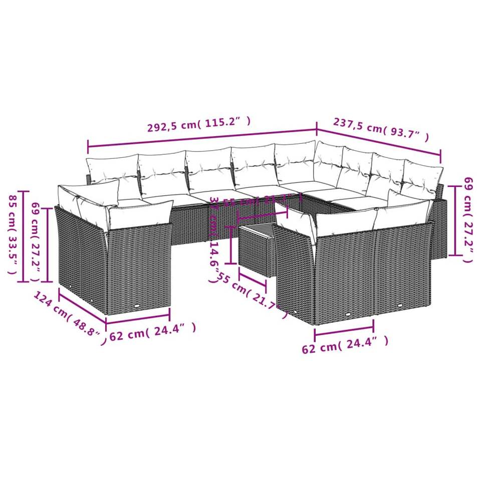 Juego de sofás de patio de ratán sintético gris de 13 piezas con cojines, colección de muebles duraderos para exteriores