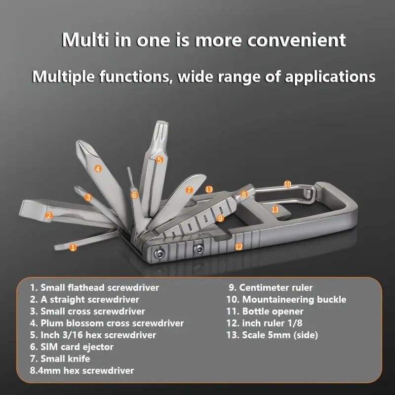 Gadget Multifuncional 13 en 1 de Acero Inoxidable, Abridor de Botellas Portátil para Exteriores, Destornillador, Soporte para Teléfono Móvil