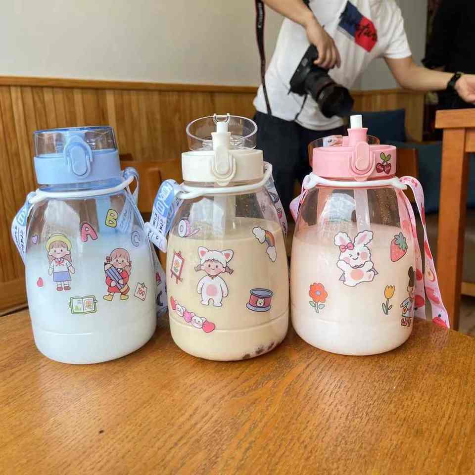 Botella de agua para gimnasio de gran capacidad de 1300 ml con doble boquilla y pajita, reutilizable, apta para alimentos y portátil.