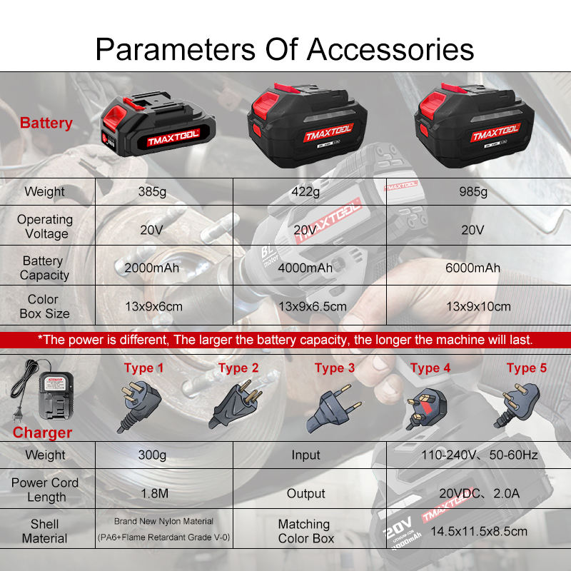 1300N. M 960Ft-lbs Alto Torque 3/4 Pulgadas 20V Pistola de impacto sin escobillas 8.0AH Batería Cargador rápido Llave de impacto eléctrica inalámbrica