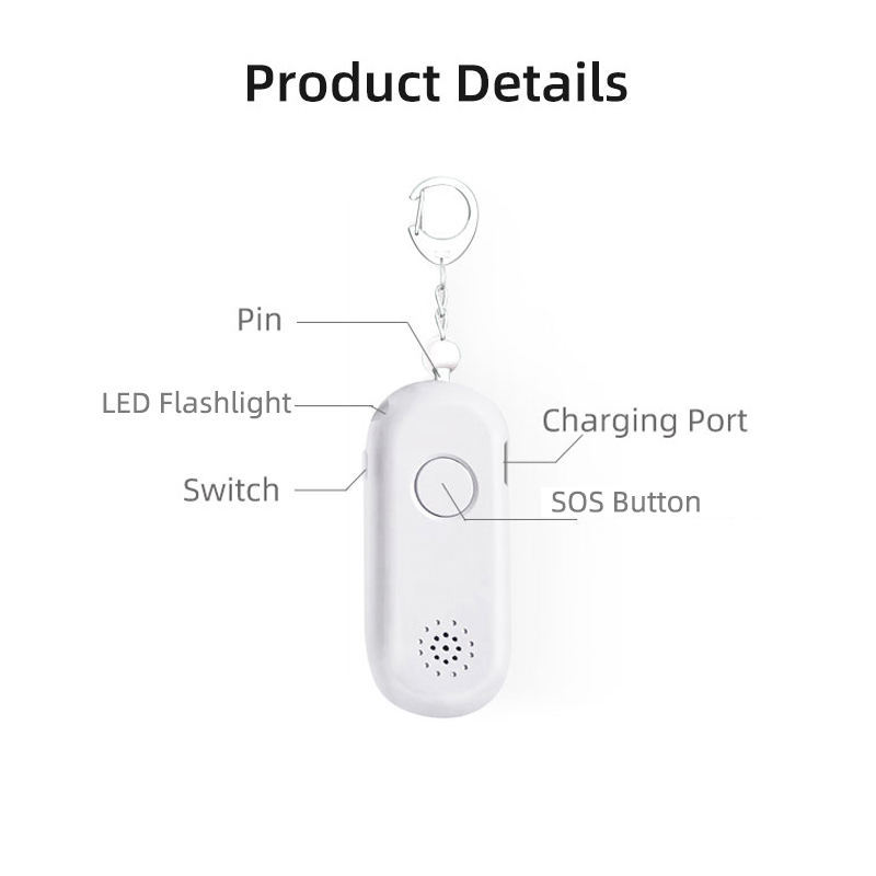 Nombre del producto:Alarma Personal Antiviolación de Bolsillo de 130DB para Autodefensa Femenina