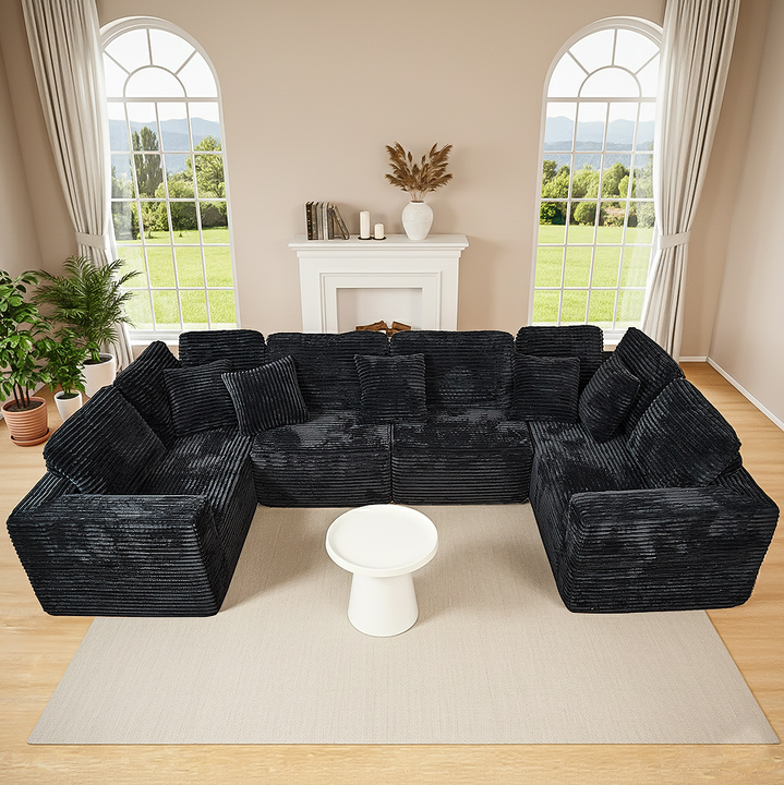 Sofá Seccional Modular Cuadrado de 135.5 Pulgadas, 6 Plazas, Chaise Longue, Diseño Reversible, Tapizado en Corduroy a Rayas, para Apartamento, Hotel/Villa