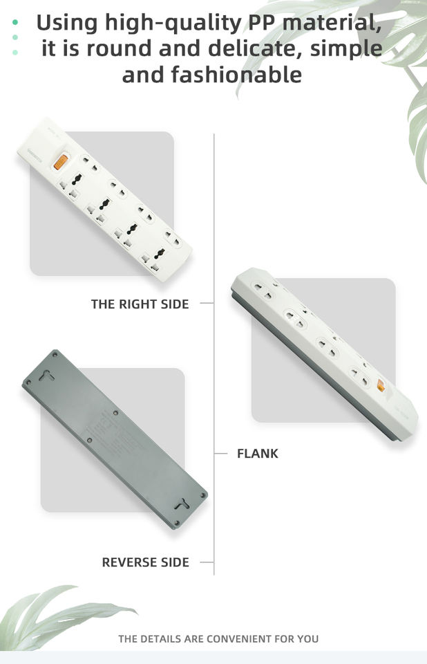 Regleta de enchufes múltiples de 13A y 3000W con enchufe UK/EU, 4 tomas de corriente de sobremesa, ABS y cobre con protección contra sobrecarga