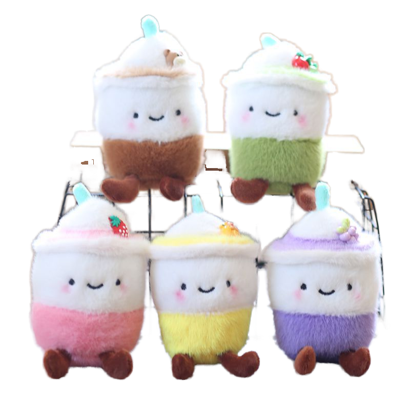 Peluche de 13 cm, suave, con forma 3D, estilo dibujos animados, de té de burbujas Boba, frutas y café con leche, con luz, para llavero y colgante de bolso
